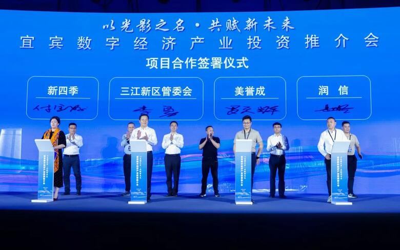 在发布会后举行的宜宾城市推介会上,宜宾市和三江新区就城市及新区发展优势、产业规划和投资机遇进行了推介,并举行签约仪式。三江新区与美誉成、新四季、润信三家企业签署了项目投资协议和战略合作协议,将进一步补齐宜宾数字经济、智能终端产业链条。