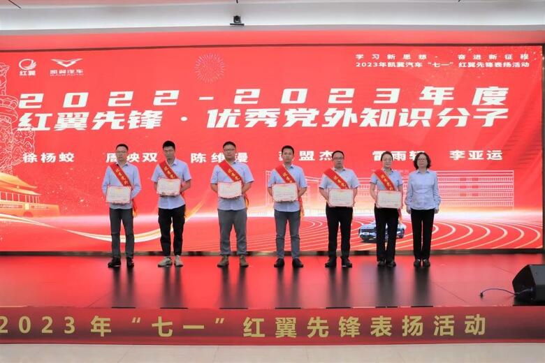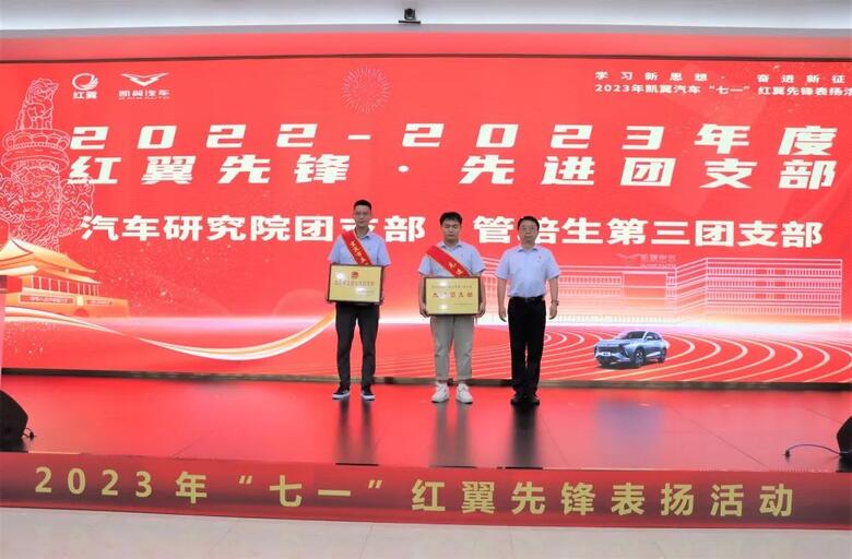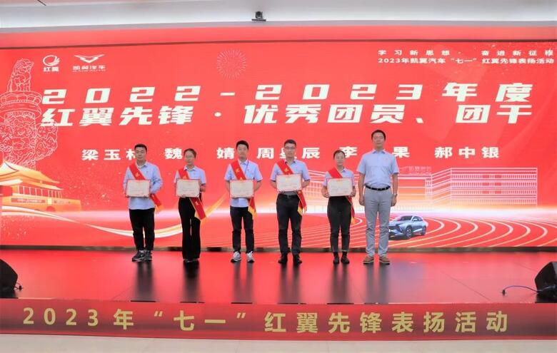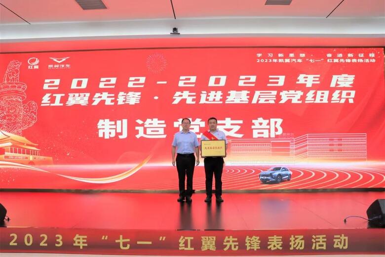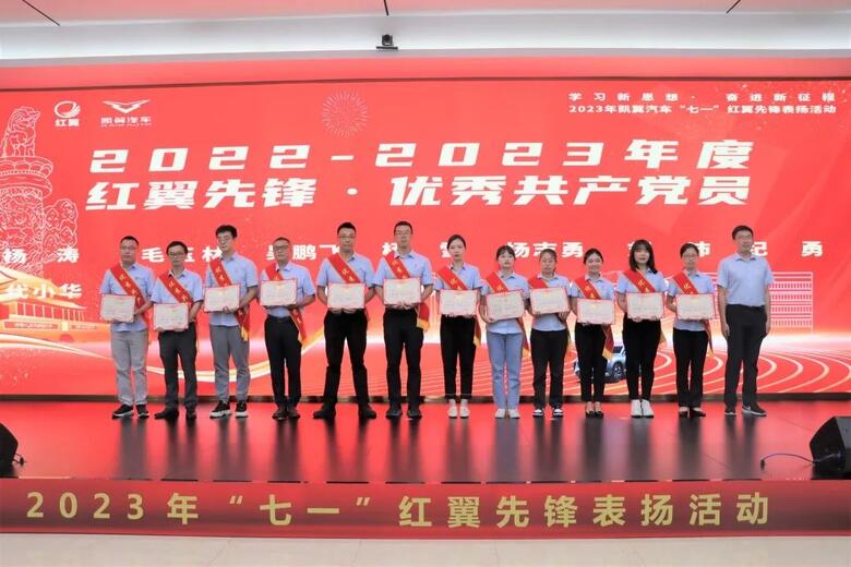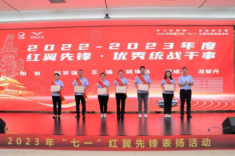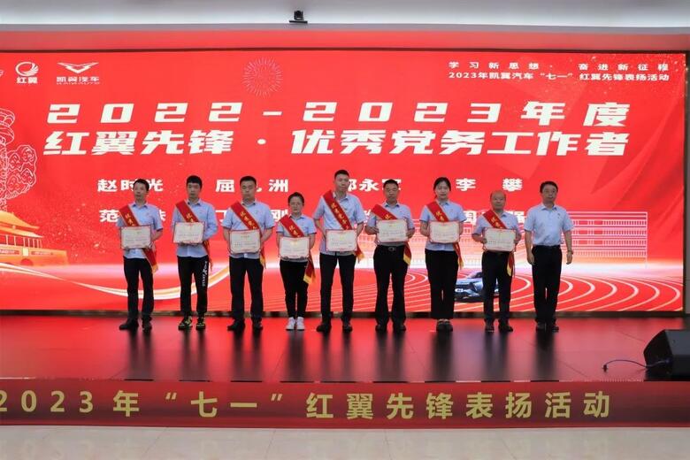 一年年,不忘的是砥砺守初心;一载载,不变的是红心永向党。为庆祝中国共产党成立102周年,进一步发挥党组织的战斗堡垒作用和共产党员的先锋模范作用、统战对象齐心聚力作用以及青年突击作用,凝聚强大奋进力量,6月27日,凯翼汽车党委组织召开2023年“七一”红翼先锋表扬大会。公司党委书记刘彬,公司党委副书记、总经理高雷,公司党委委员、纪委书记曾辉,公司党委委员、监事会主席、工会主席隆兴银出席会议。