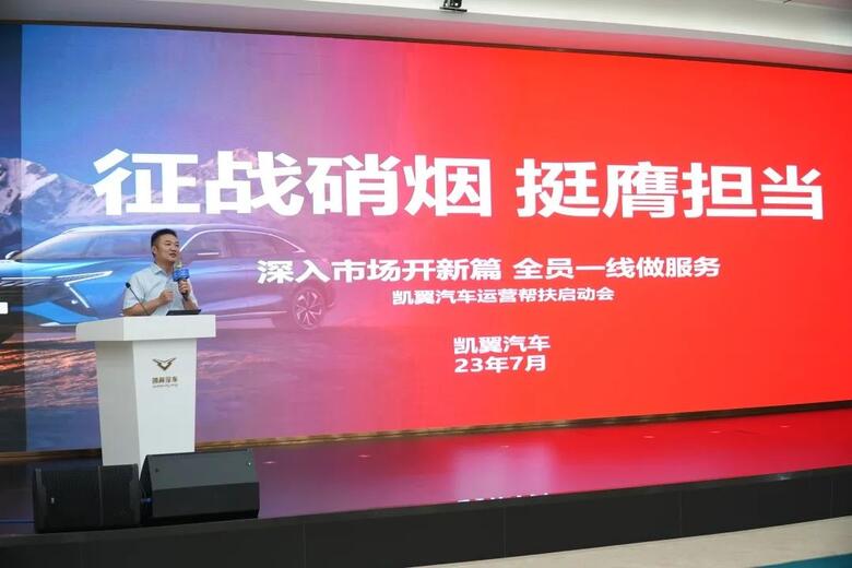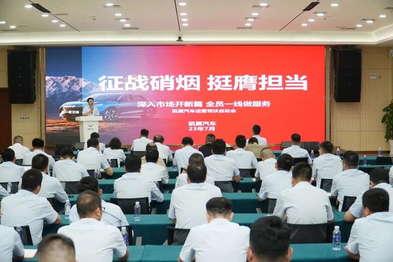 为进一步增强全体员工用户至上使命感、企业主人翁责任感,牢固树立用户服务意识和市场帮扶意识,全面贯彻落实凯翼汽车全员营销的工作精神,达成全年的奋斗目标,营造团结协作、拼搏进取、人人服务的工作氛围,7月3日,凯翼汽车召开“征战硝烟 挺膺担当”运营帮扶启动会。凯翼汽车党委副书记、总经理高雷出席会议并讲话,副总经理何勇平对下半年营销工作进行了宣讲。