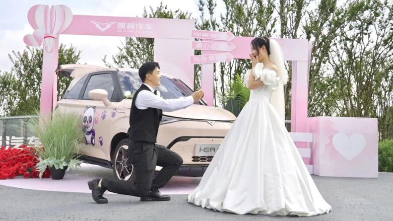 凯翼汽车作为此次活动的婚礼车队,负责带领新人们走向幸福的婚礼殿堂,凯翼不仅为新人们提供舒适安全的出行,更象征着新人未来幸福生活的开始,将这份甜蜜的爱情传递给每一位参与活动的嘉宾。