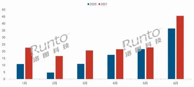 根据洛图科技(RUNTO)《中国智能门锁零售市场月度追踪(China Smart Lock Retail Market Monthly Tracker)》报告,2021年上半年中国智能门锁线上市场销量为149.6万套,同比增长47%;市场销额为22.4亿元,同比增长62%。