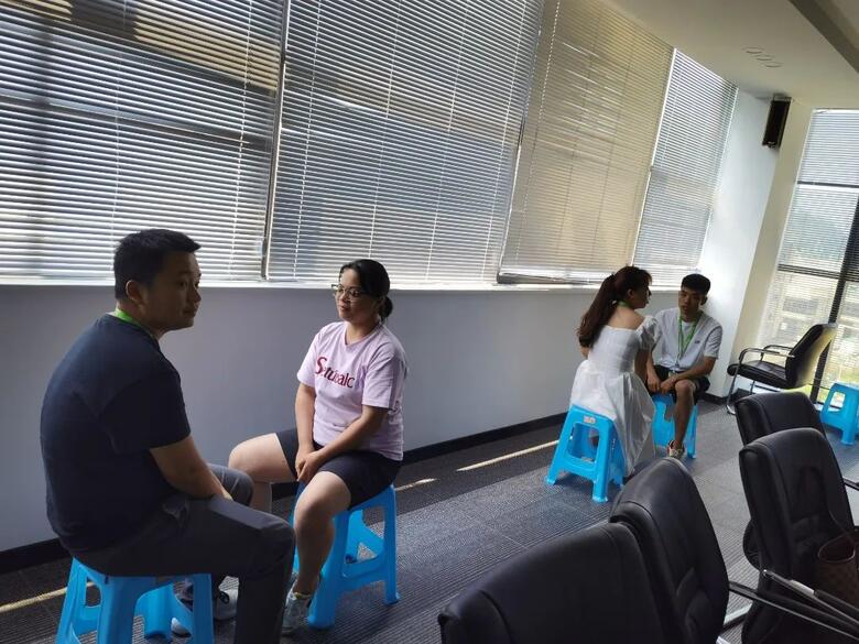 培训由一个小游戏开始,现场将参与培训人员分为AB两组,让AB员工分别向对方做自我介绍,阐述自己未来五年的计划,并分享过去所经历的难忘的事情。让大家在游戏中体会沟通的重要性,由此拉开本次培训。