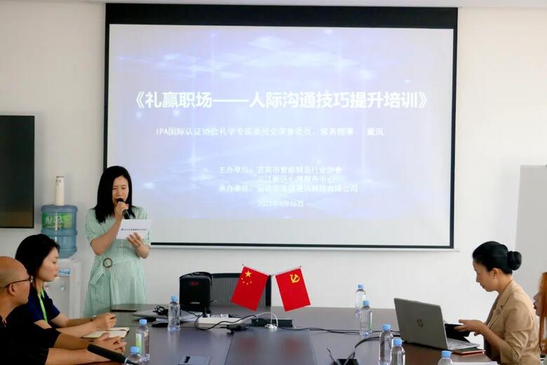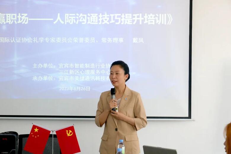 在职场中,表达能力和沟通技巧是非常重要的,良好的职场人际关系和沟通技巧有助于营造愉悦的工作氛围,提高工作效率。为了进一步全面提升员工综合素质和专业知识,提升员工的沟通技巧,帮助员工构建良好的人际关系。6月26日,应宜宾市美捷通讯科技有限公司邀请,协会联合三江新区心理服务中心走进宜宾美捷开展《礼赢职场——人际沟通技巧提升培训》活动。本次活动邀请到IPA国际注册专业礼仪人才测评中心高级礼仪培训师戴凤老师进行分享,来自美捷约20位不同岗位、职务的员工参加。