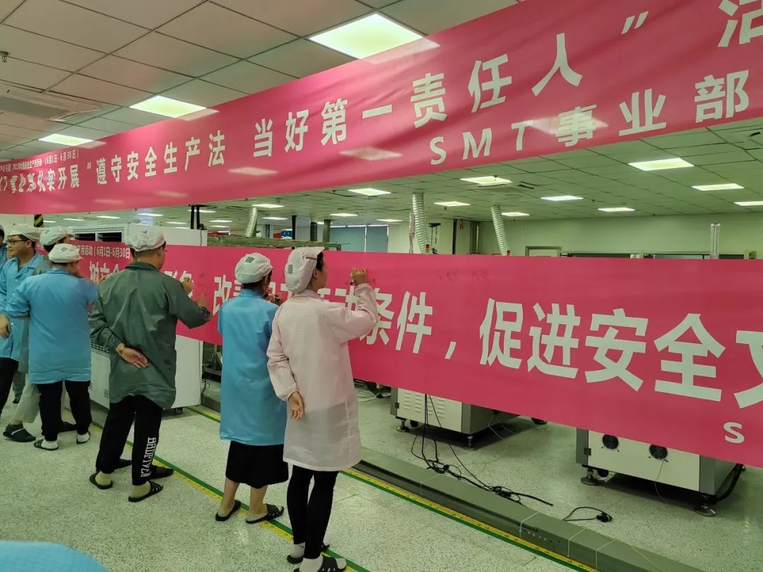 6月6日,为迎接全国第21个安全生产月,朵唯SMT事业部、整机事业部以“遵守安全生产法,当好第一责任人”为主题,分别组织管理人员、班组长及一线员工开展了主题横幅签字承诺活动。